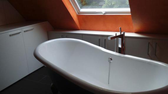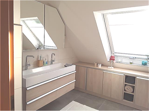 Auch Bäder mit Dachschräge können passend ausgebaut und optimal nutzbar gemacht werden.