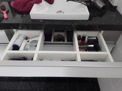 Auch hier haben wir den Syphon umbaut und damit eine durchlaufende Frontblende der Schublade ermöglicht.