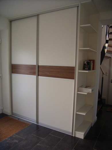 Garderobenschrank nach Maß mit 2 Gleittüren und angebautem Eckregal.