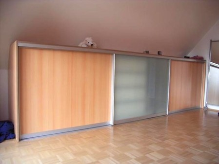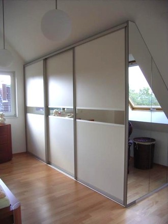 Dieser Gleittürenschrank wurde unmittelbar vor einer Dachschräge eingebaut und ist mit 303cm sehr hoch.
