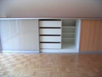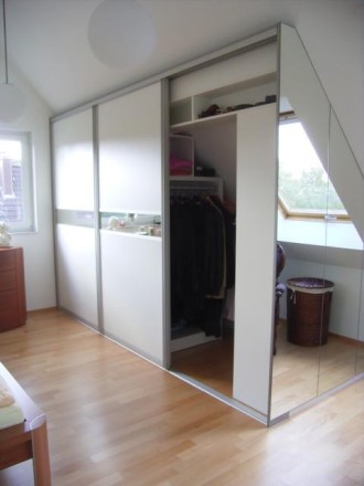 Schiebetüren nach Maß an Schrank vor Dachschräge als begehbarer Kleiderschrank