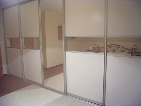 (Gleittüren nach Mass mit Vollverspiegelung und lackiertem Glas)