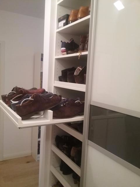 Schuhschrank nach Maß mit Gleittüren in schmalem Hauswirtschaftsraum