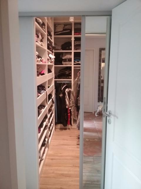 Möbel-Mass-Gleittür als Zugangstür zu einem begehbaren Kleiderschrankschrank