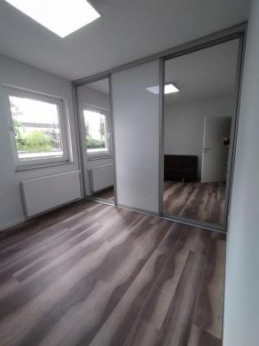 Dieser Kleiderschrank nach Maß (auch als begehbarer möglich) mit Gleittüren nach Maß, scheint mit seiner Mitteltür den Blickin einen anderen Raum zu ermöglichen.